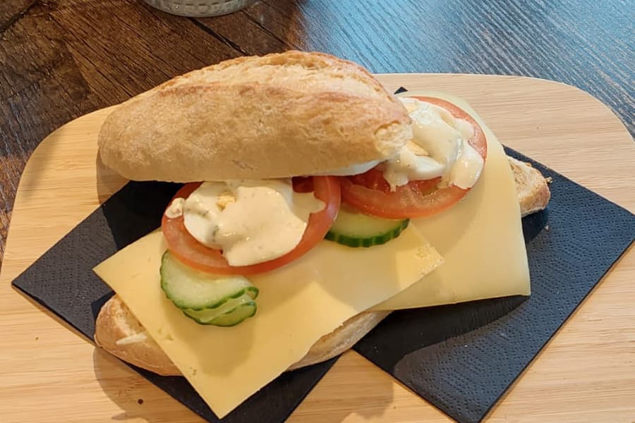 Gezond, kaas, komkommer, tomaat, ei, sla en mosterd mayo